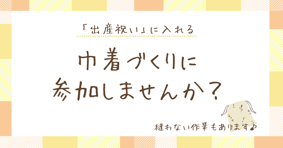 赤ちゃんへ贈る、巾着づくりに参加しませんか?