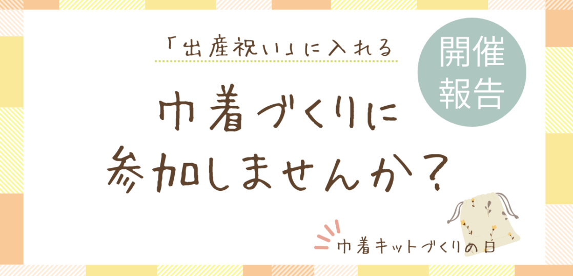 ウェルカムベビープロジェクトの「出産祝い」に入れる巾着を、みんなで手づくりして赤ちゃんとご家族へ贈る「巾着おくりプロジェクト」。