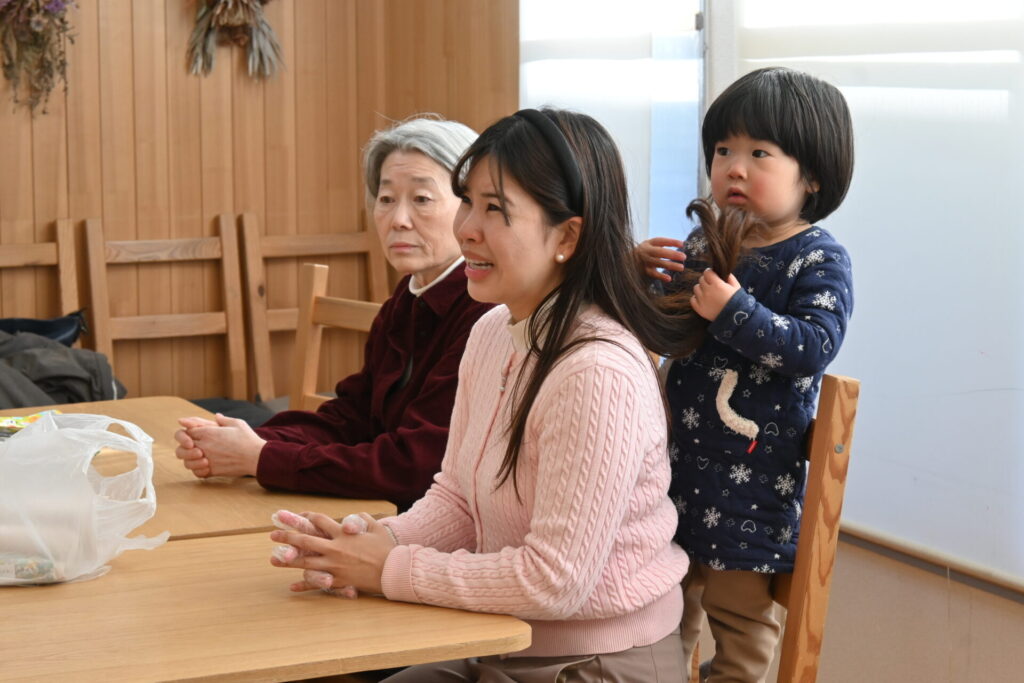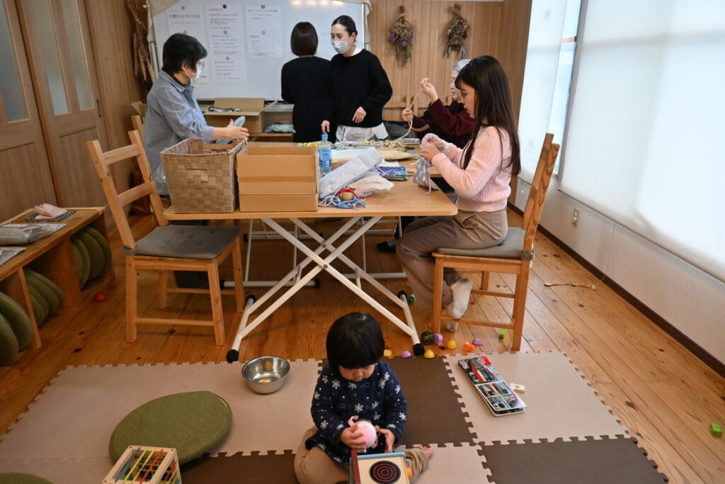 ひもを通す作業をしてくれたママは、こうやって巾着が完成して成果が見えるのがいいですよね、自分一人で作業するのはたいへんだけど、ここでみんなでやるからいい、とおっしゃっていました。