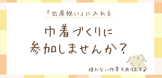赤ちゃんへ贈る、巾着づくりに参加しませんか?